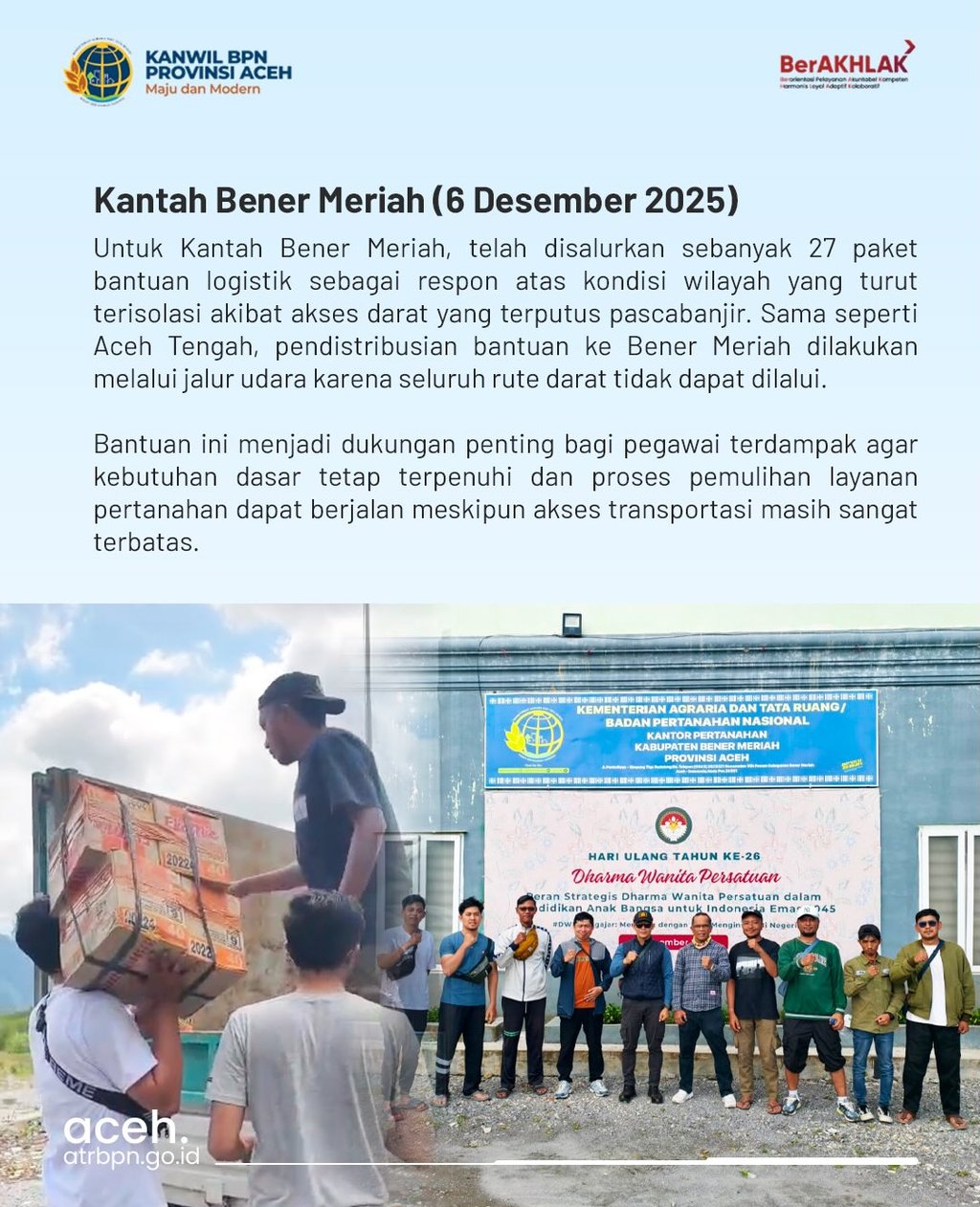 Ucapan Terima Kasih kepada Kanwil BPN Aceh atas Dukungan untuk Kantah Bener Meriah